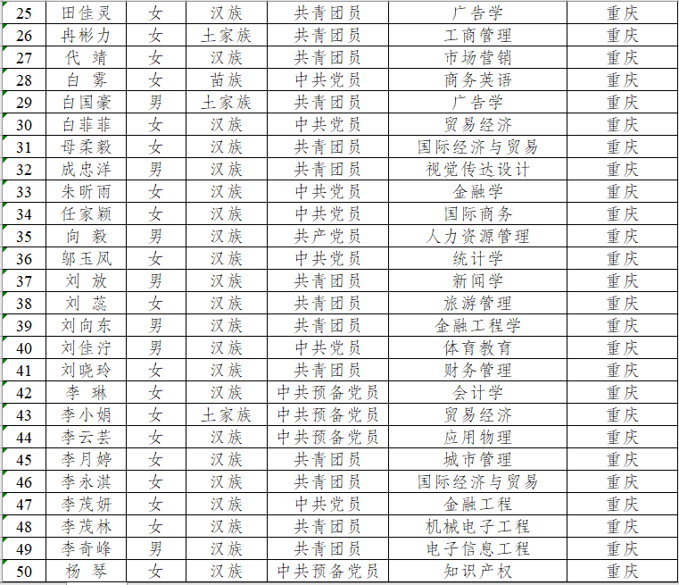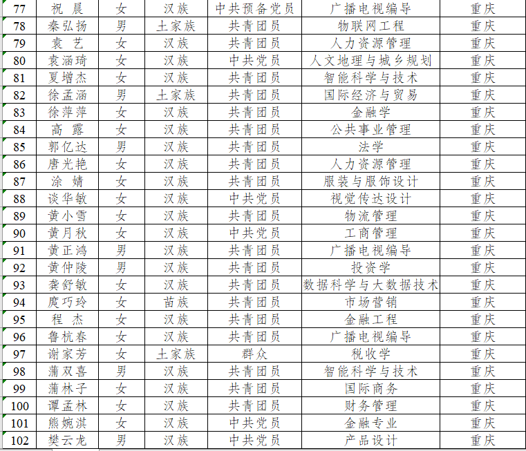 公示时间:6月14日—6月16日。公示期间如有异议,请将意见反馈至校团委。联系人:王微,联系电话:62769004,邮箱:xtw@ctbu.edu.cn。