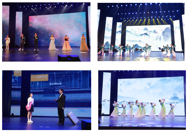 新年新气象,福娃贺新春。舞蹈《福娃闹春》拉开了晚会的帷幕,送走丑牛,又是一段青春岁月,迎来寅虎,又是一年奋斗时光。啦啦操《舞动青春》活力四射,彰显青春风采。合唱《强国一代有我在》歌声嘹亮,献礼党的百年华诞,书写重工商大为祖国发展建言献策,齐心协力,再谱新篇。街舞《好运来》舞蹈《盛开》带来新的一年好运连连的美好心愿,相声《有哲理的人》呼吁绿色出行,引人深思。乐器演奏《水草舞》《琵琶语》《大鱼》展示着东方的神韵,以悠扬的音符向观众分享幸福和喜悦,歌颂祖国在新时代的春风中起舞绽放。太极舞蹈《少年中国说》以磅礴大气的演绎,赢得观众的热烈掌声。国标舞《信仰》展现了重工商大学子自信满满、奋发向上的精神面貌和健康活泼的青春风采。歌曲《星辰大海》表达了青年学子对梦想的无限追求,唱响主旋律,讴歌新时代。舞蹈《雨歇》、小品《双城故事》饱含着对未来的无限希望,绽放着青春与梦想的光芒。服装秀《大隐生花》更是将当代重工商大艺术学子的专业素养与创造能力展现得淋漓尽致。