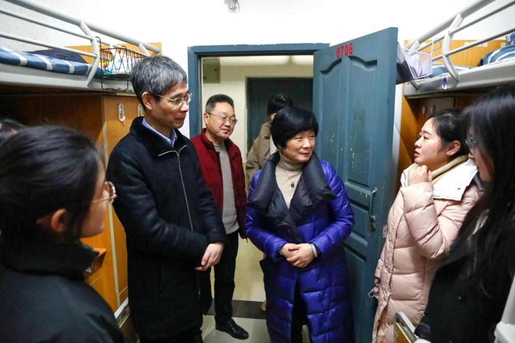 在兰花湖片区和南岸校区,孙芳城、宋豫看望慰问了辅导员和安保人员,向他们致以节日问候和新年祝福。孙芳城强调,要时刻筑牢疫情防控坚固防线,坚持防疫和安全防范并重,维护校园安全稳定。他还来到学生宿舍,与学生亲切交谈,勉励大家努力学习,以奋勉之姿开启2022年的新征程。