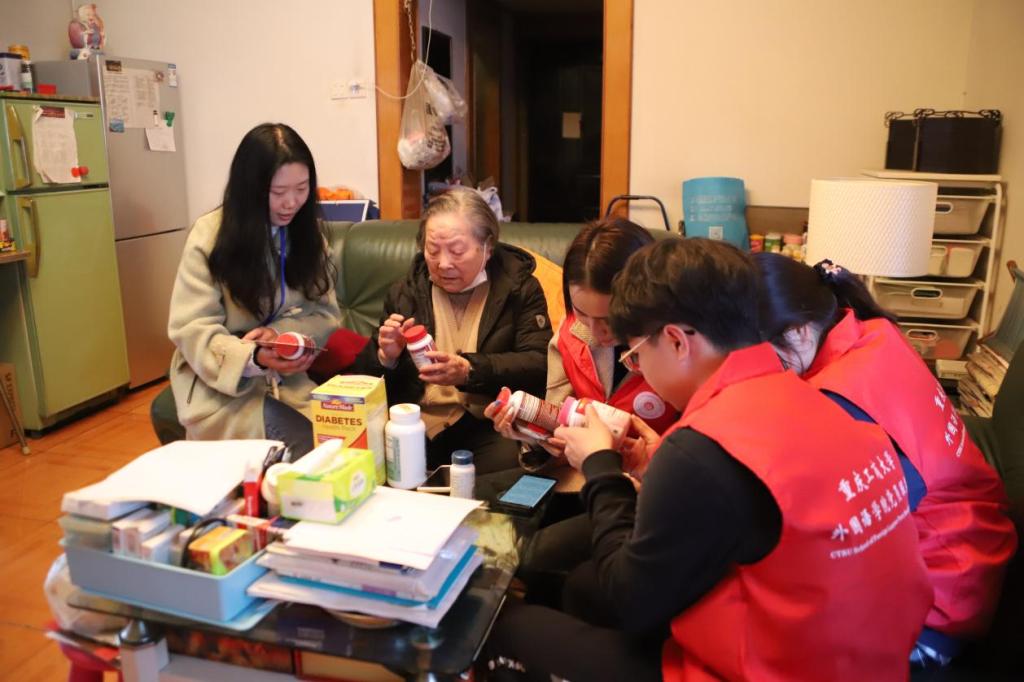 志愿者为独居老人讲解药品用途及使用方法
