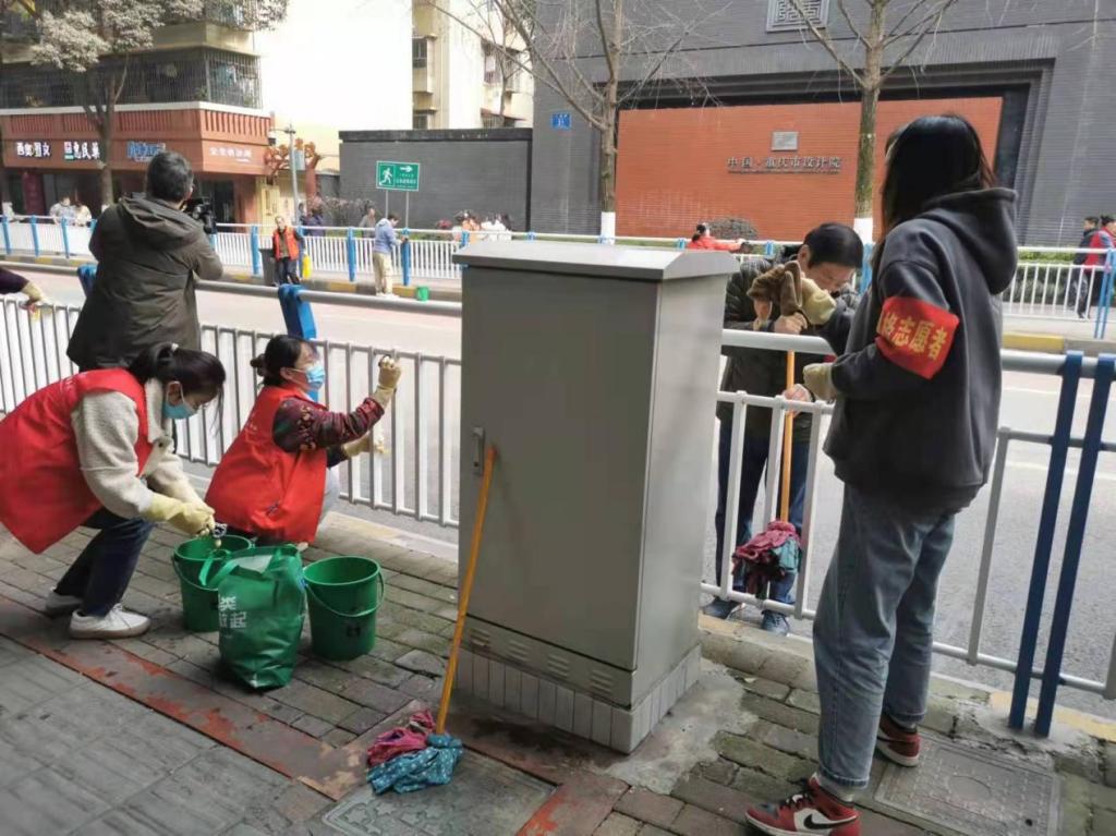 3月4日下午,外国语学院学生党支部党员和党员服务站的小葵花志愿者们走进渝中区大溪沟街道,与人和街社区联合开展“党旗引领,团旗飘扬”学雷锋志愿服务活动,为社区居民送去关爱和帮助,与社区群众一起打扫卫生、清洁城市死角,为独居老人提供药品使用说明书翻译服务等,得到社区居民的连声称赞。