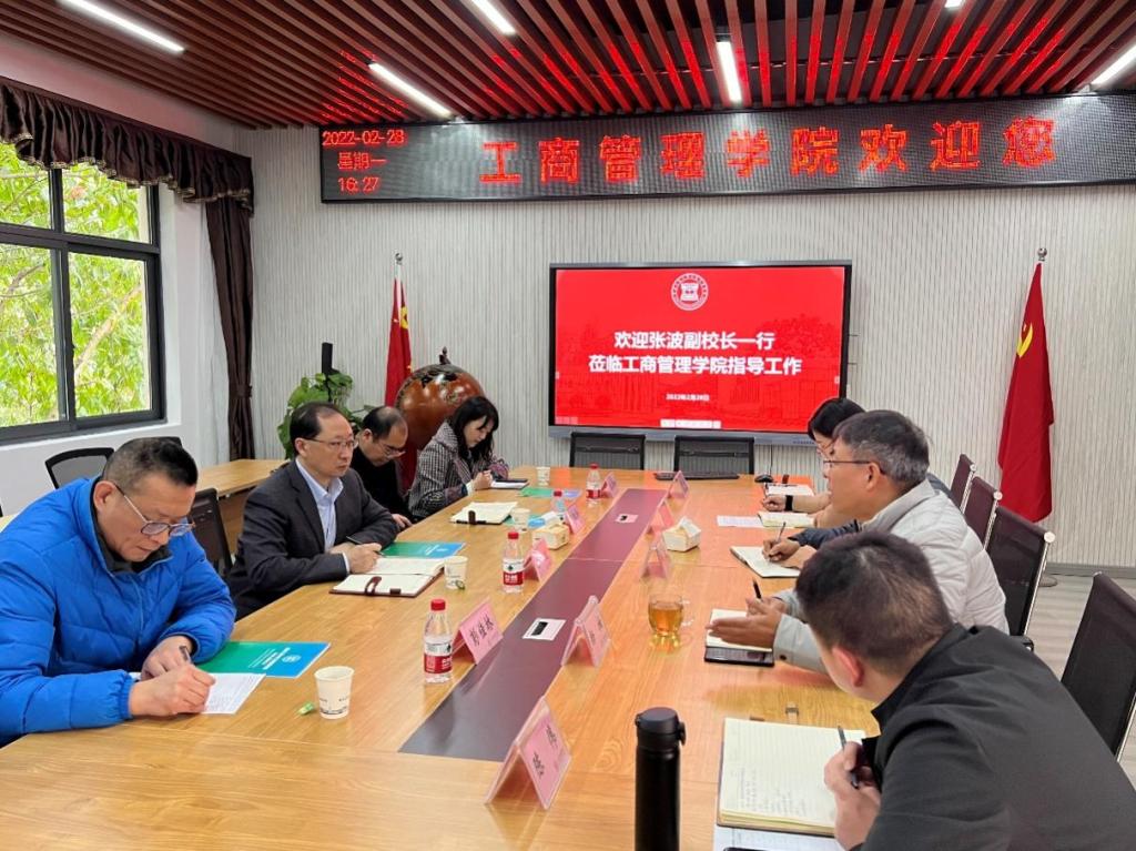 张波就工商管理学院的学科建设工作给予了肯定,他强调,学院应主动出击,做好学科顶层设计,在高水平论文、科研奖励、重大项目、高层次人才队伍建设以及人才培养质量等方面加大组织谋划力度,尽快补足短板,力争在工商管理一级学科博士点申报上取得突破,将学院整体工作推向更高的台阶。