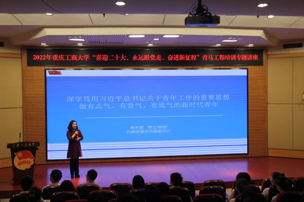 为迎接党的二十大胜利召开,引导广大青年团员深入学习贯彻习近平新时代中国特色社会主义思想,培养信仰坚定、能力突出、素质优秀、作风过硬的团学骨干,4月22日下午,校团委在博智楼7200报告厅举办2022年167net必赢客户端“喜迎二十大、永远跟党走、奋进新征程”青马工程培训专题讲座。共青团重庆市委副书记黄永宜作了题为《深学笃用习近平总书记关于青年工作的重要思想 做有志气、有骨气、有底气的新时代青年》的专题讲授。校团委全体专职团干、校级“青马工程”培训班学员、团员代表参与活动。