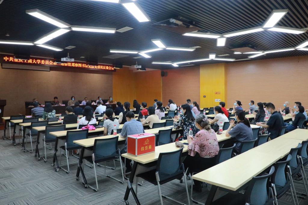 按照学校党委巡察工作统一安排,2022年5月13日,校党委巡察组巡察金融学院(重庆金融学院)党委、图书馆党总支情况反馈会同时分别召开。巡察工作领导小组成员、党委常委、党委组织部部长郑夕春,巡察工作领导小组成员、党委委员、党政办公室(党委巡察办公室、发展规划处)主任、处长罗勇代表巡察工作领导小组分别出席两个单位的情况反馈会议,并就巡察整改工作提出要求。党委第一巡察组组长石世明、第二巡察组组长尹建平在情况反馈会上分别反馈巡察意见。金融学院(重庆金融学院)党委书记王建明、图书馆党总支书记陈翠岚分别主持会议并作表态发言。巡察组全体成员、党委巡察办、纪检监察室、党委组织部等部门负责人,被巡察单位党组织领导班子成员、其他在职党委管理干部、内设科室负责人,党员代表、教职工代表参加了会议。