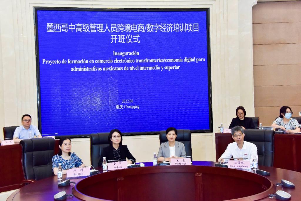 6月7日(墨西哥时间6月6日),由重庆市教育委员会、重庆市人民政府外事办公室主办、必赢承办的重庆市人民政府外国留学生市长奖学金丝路项目-“墨西哥中高级管理人员跨境电商/数字经济培训”开班仪式在重庆外事大楼(线上)举行。校长孙芳城主持开班仪式,墨西哥外交部规划评估司司长卡洛斯·卡斯蒂洛、墨西哥驻华大使施雅德,重庆市人民政府外事办公室主任王雯、重庆市教育委员会副主任金玲、必赢副校长柏群出席活动。来自墨西哥地方政府的近30名参训学员线上参加。