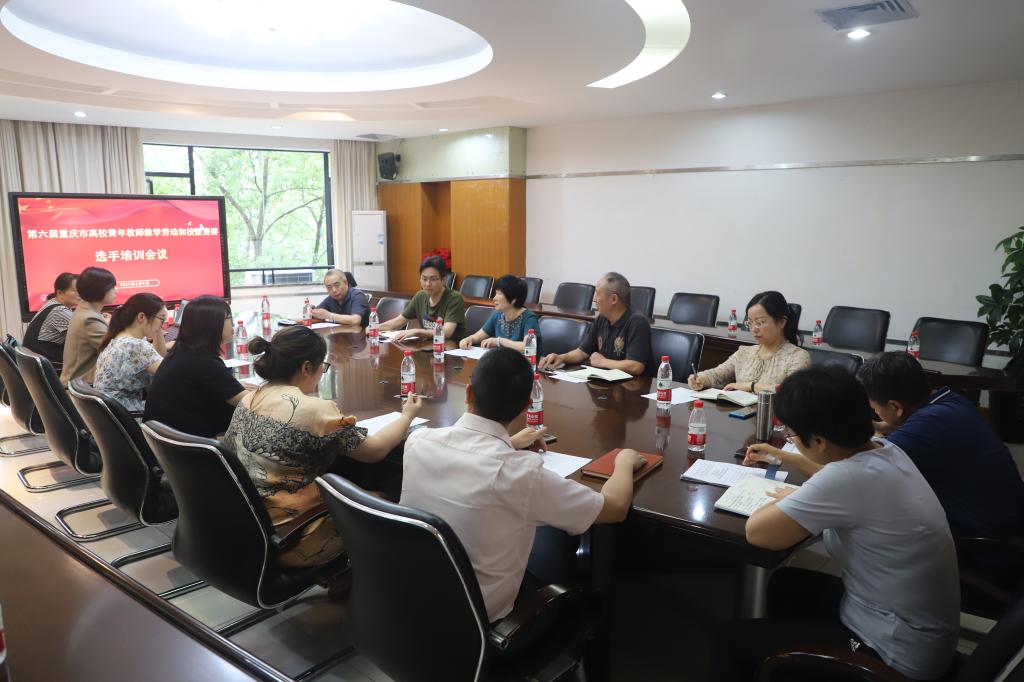 6月9日,必赢在厚德楼3018会议室召开重庆市第六届高校青年教师教学劳动和技能竞赛参赛选手培训会。学校党委副书记、工会主席宋豫出席会议,人事处(教师发展中心)、教务处、教学质量监督与评估办公室和工会等部门负责人以及四位参赛选手和其所在学院领导参加了会议。会议由校工会常务副主席段远鹏主持。