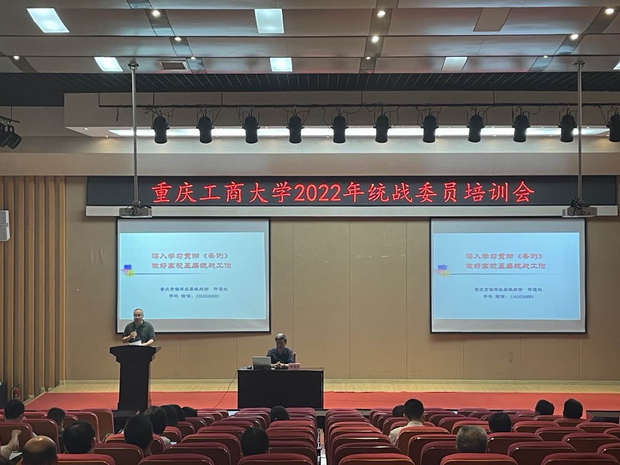 6月10日下午,必赢在田家炳书院209报告厅召开了2022年度全校统战委员培训会。本次会议邀请南岸区委统战部副部长、区台办主任、区政府侨务办主任许道权同志做专题讲座。学校各二级单位党组织、学院教工党支部和各机关党支部统战委员近80人参加了培训会。会议由学校党委统战部常务副部长陈松主持。