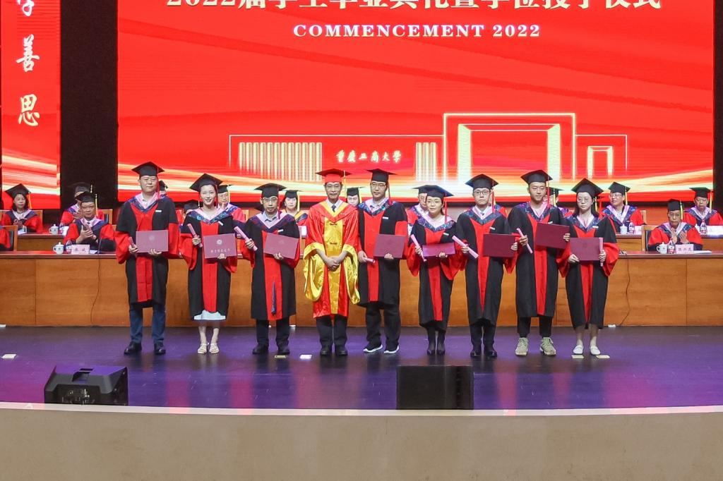 李敬宣读《167net必赢客户端学位评定委员会关于授予欧哲森等6284人学士学位的决议》。校领导为2022届本科毕业生代表颁发毕业证书并授予学士学位。