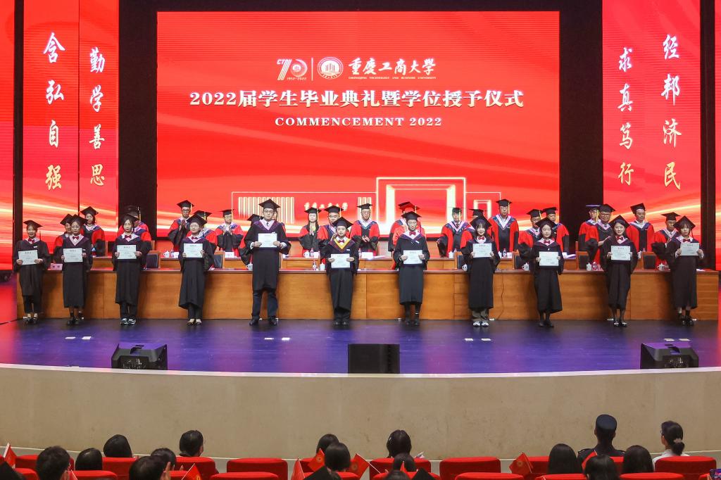 陈运超宣读《167net必赢客户端关于表彰2022届校级优秀毕业生的决定》《关于表彰167net必赢客户端2022届优秀毕业研究生标兵、优秀毕业研究生的决定》。校领导为优秀毕业生代表颁发荣誉证书。