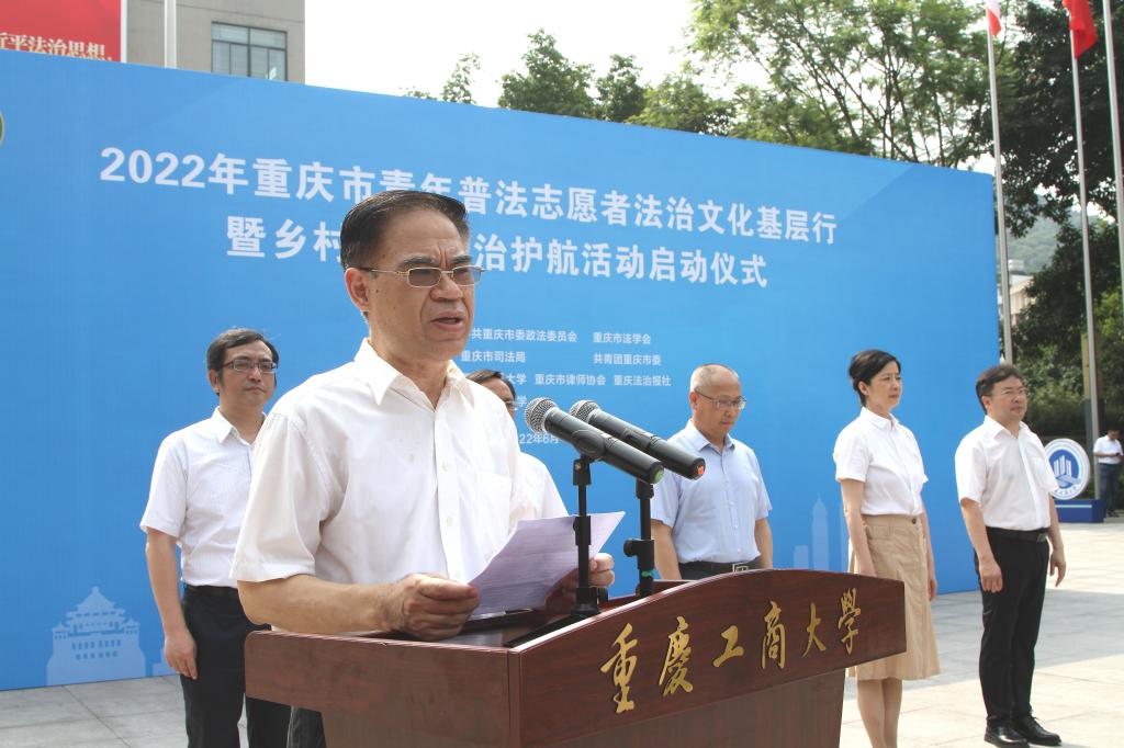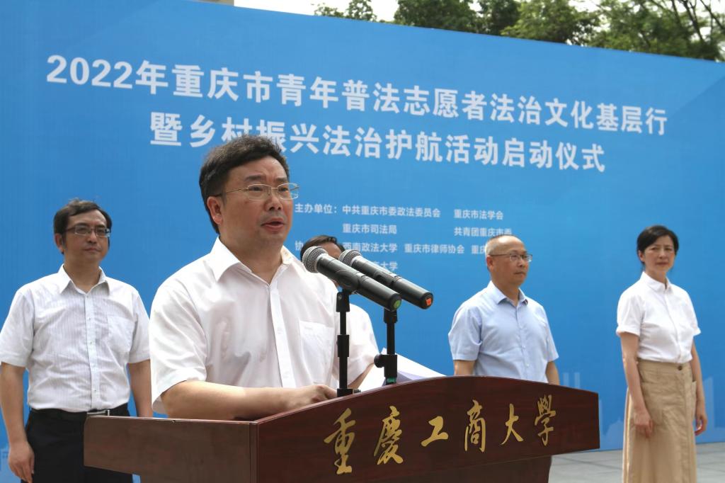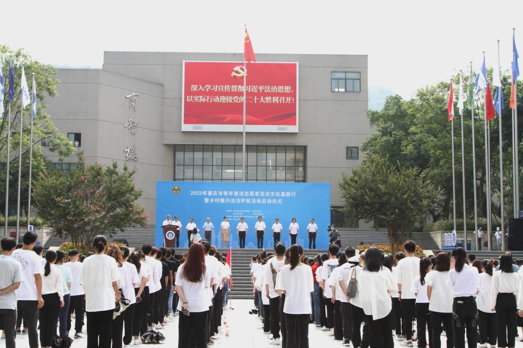 6月21日,由市委政法委、市法学会、市司法局、团市委联合主办的“2022年重庆市青年普法志愿者法治文化基层行暨乡村振兴法治护航活动启动仪式”在必赢含弘广场举行。来自167net必赢客户端法学与社会学学院、西南政法大学民商法学院、重庆警察学院、重庆大学法学院、西南大学法学院、重庆邮电大学网络空间安全与信息法学院等法学院校大学生志愿者代表、市律师协会青年普法志愿者代表,市法学会民法经济法研究会、统筹城乡发展法治研究会、重庆法治报社乡村振兴法治护航中心,以及主城核心区的法学会、司法局、团区委,市乡村振兴局、团市委、市级政法各部门有关负责人以及必赢有关领导参加了启动仪式。