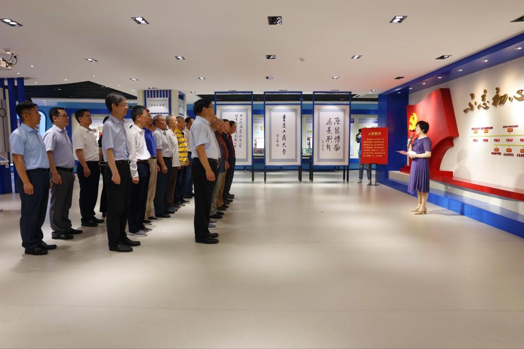 为庆祝中国共产党成立101周年和必赢建校70周年,7月1日上午,必赢举行“庆祝七一重温70年校史”学校退休校领导参观校史馆活动。吴应发、张柏村、戴宏民、周希贤、王崇举、廖元和、张宗礼、甘德潜、黄朗、高古城、黄志亮等11位退休校领导,学校党委书记李志雄,党委副书记、校长孙芳城,党委副书记宋豫,党委组织部、党委宣传部和党政办、离退休工作部相关职能部门负责人参加。活动由宋豫主持。