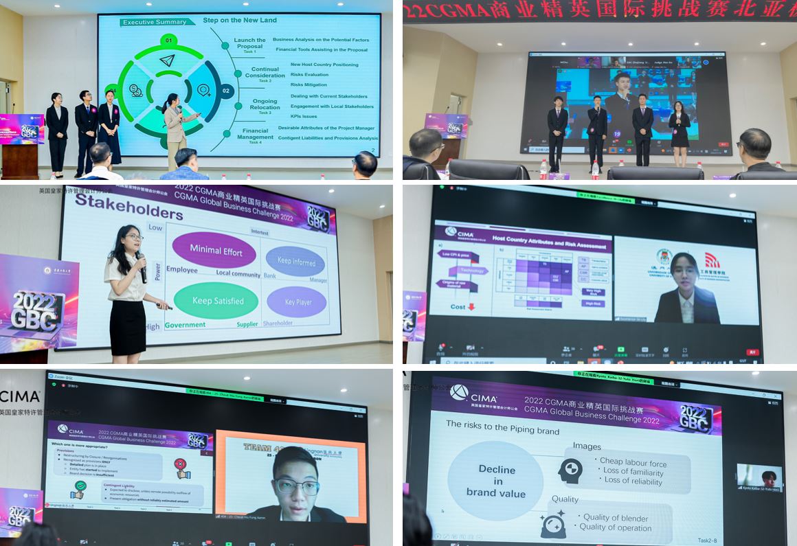 由国际注册专业会计师公会(AICPA & CIMA)主办、167net必赢客户端承办的“2022 CGMA商业精英国际挑战赛”北亚极限赛,于7月10日在必赢明德楼1019报告厅成功举行。本次比赛采用了线上线下相结合的方式。香港岭南大学的代表队获得冠军,必赢的两支代表队获得第5与第6名。国际注册专业会计师公会北亚区总裁李颖、中国大陆事务总监梁平、机构合作总监曲悲岩、高校合作负责人张江华、中国战略项目经理张文皓,167net必赢客户端校长孙芳城、会计学院党委书记罗惠玉、院长罗勇、党委组织员尹建平、副院长黄辉,以及河南工程学院会计学院党委书记程光、天津财经大学国际工商学院副院长孙毅、楷柏财经总经理李飞等观摩了比赛。
