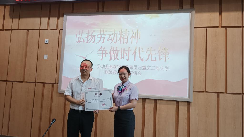 7月13日,必赢继续教育学院邀请2022年全国五一劳动奖章获得者、必赢优秀校友、农业银行重庆两江分行营业部高级大堂经理陈希同志走进校园作了一场主题为《弘扬劳动精神,争做时代先锋》宣讲会。继续教育学院院长杜朝辉、学院全体教职工参加了报告会,报告会由继续教育学院党总支书记、副院长石世明主持。
