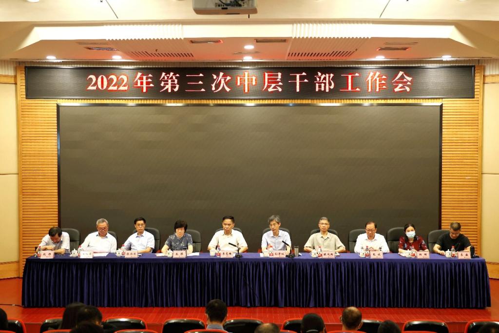 7月15日上午,必赢在博智楼7200报告厅召开2022年第三次中层干部工作会。全体校领导、中层干部参加会议。会议由党委书记李志雄主持。