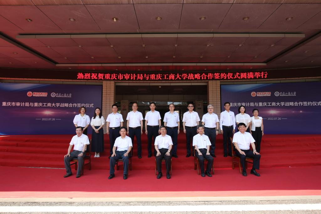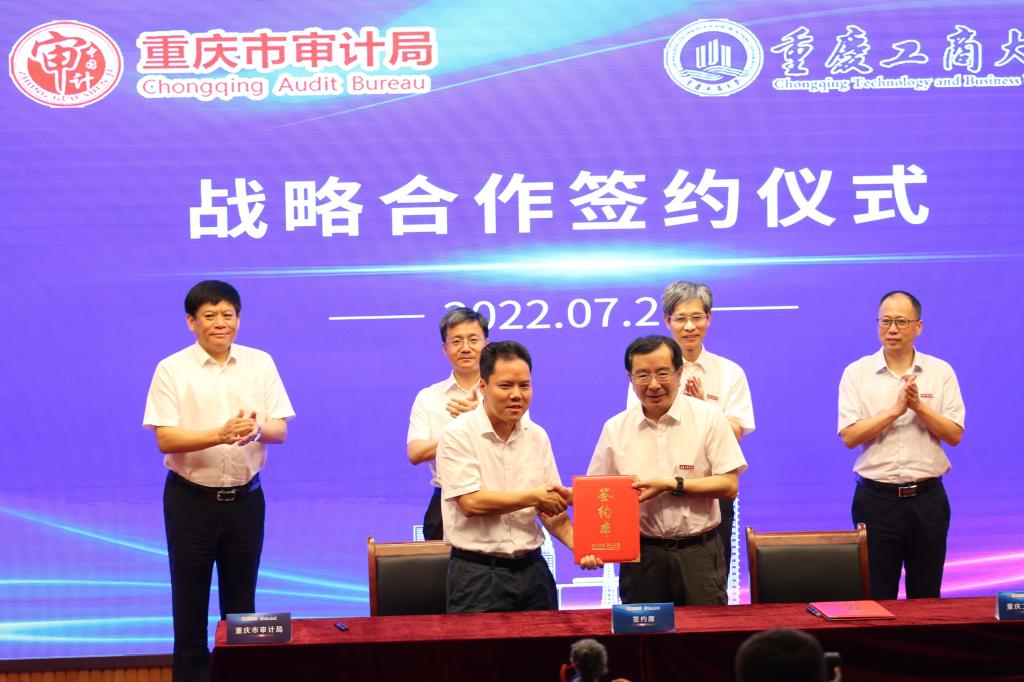 7月26日下午,学校与重庆市审计局战略合作签约仪式在南岸校区博智楼7200报告厅举行。中共重庆市委审计委员会办公室主任、市审计局党组书记、局长姜国杰,副局长戴希、一级巡视员、副局长张海坤,学校党委副书记、校长孙芳城,副校长赵骅,重庆市审计局相关处室负责人、南岸区审计局负责人、首期计算机审计初级培训班学员代表、必赢会计学院班子成员及部分教师代表等参加了签约仪式。仪式由会计学院院长罗勇主持。