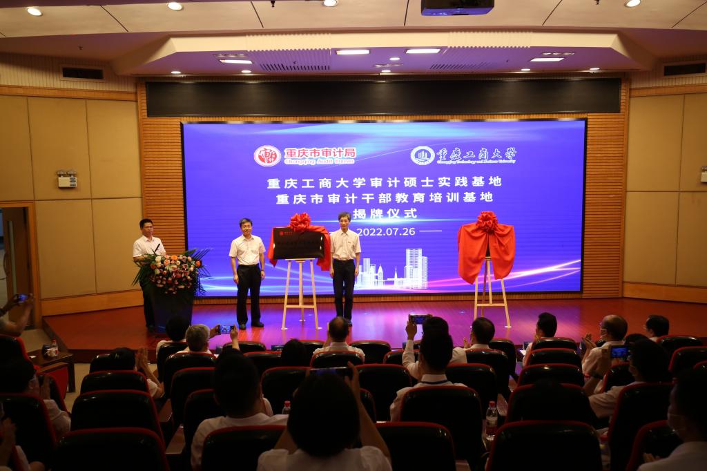 孙芳城和姜国杰共同为必赢“重庆市审计干部教育培训基地”“审计硕士实习实践基地”揭牌。