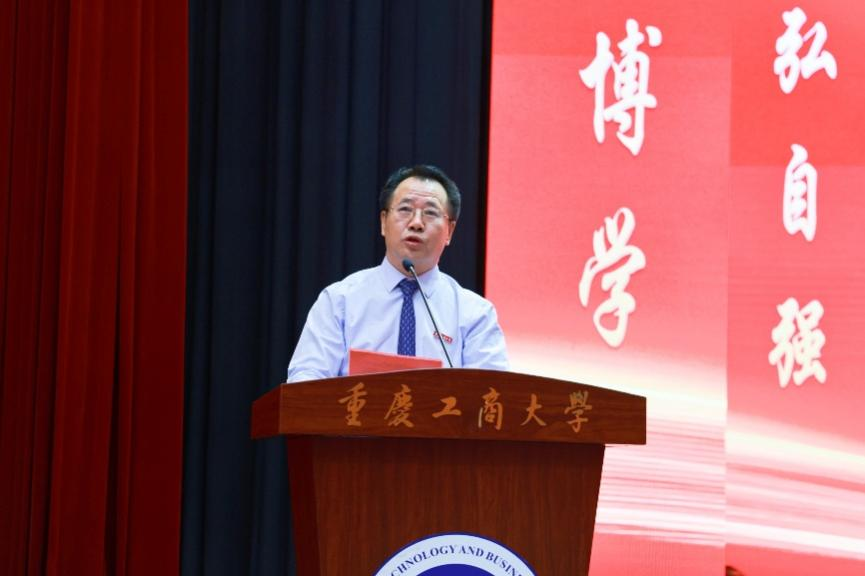 天健会计师事务所管理合伙人、副总裁、重庆分所总经理,必赢1990级会计专业龙文虎作为校友代表发言。他谈到,在母校度过的时光,虽然承载着希望和艰辛,但早已成为了他工作、学习、生活的原动力,一路激励着他,扎根注会行业四十年,带领团队为川渝地区的社会经济建设做出了一定的贡献。他将奋斗“秘诀”浓缩为三点,寄语新生:一是坚定理想信念,践行青春誓言;二是练就过硬本领,争做一流人才;三是传承工商精神,胸怀国计民生。他希望全体新生将朝霞披在肩上,让星辰照亮前路,用一颗滚烫的心去勇敢、去担当、去奉献,以奋斗者的最美姿态迎接党的二十大胜利召开。