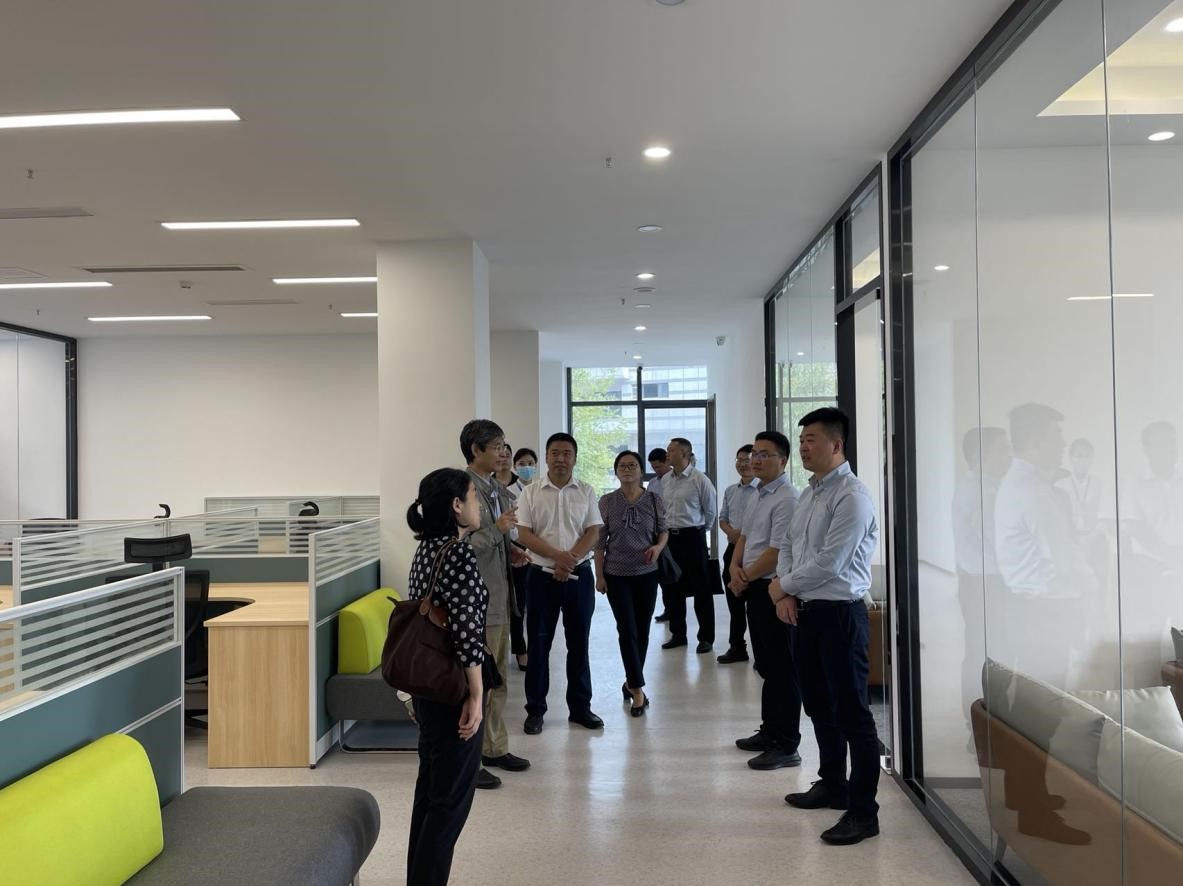 孙芳城一行在高新区财政局局长吴红坪同志陪同下,调研了落户西部科学城科学谷一期的重庆金融科技研究院。执行院长杨开元介绍了研究院的建设进度。