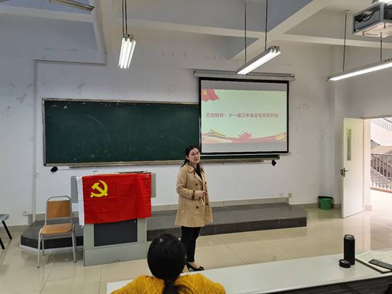 4月23日下午,副校长柏群在田家炳306教室为金融学院师生党员讲授题为《历史转折:十一届三中全会与改革开放》的党史学习教育专题党课。金融学院党委书记王建明、党委副书记余新、副院长庞楷、专职组织员赵甫刚、支部书记、行政人员和学生党员共计80余人参加了学习。会议由王建明主持。