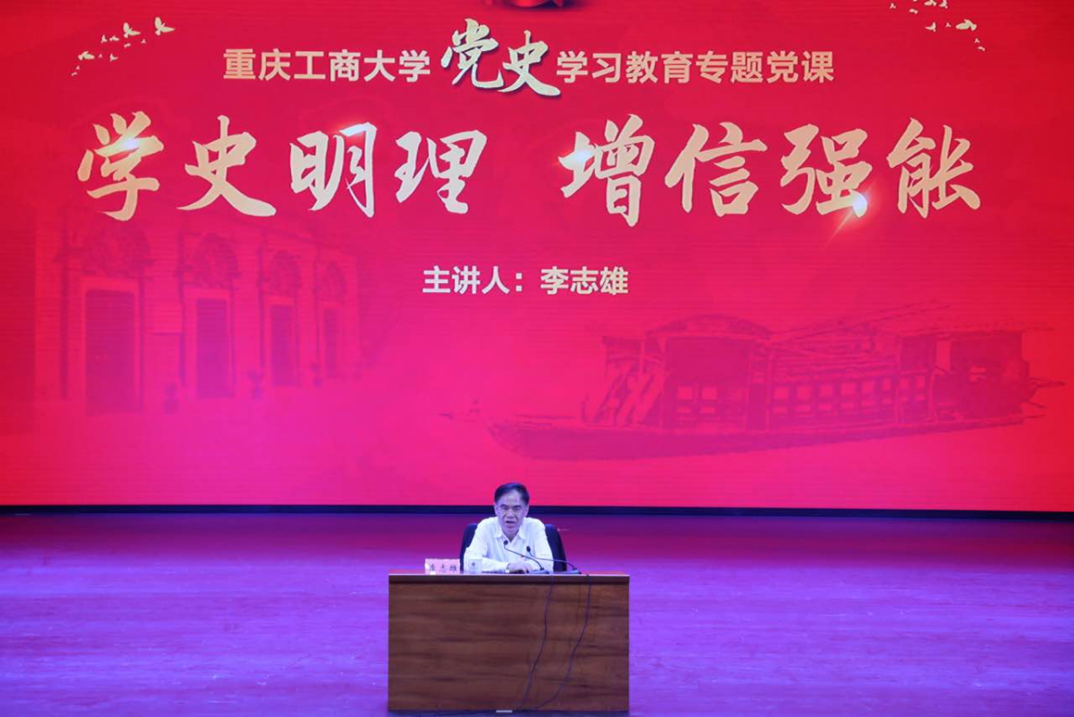 4月30日下午,学校党委书记李志雄在南岸校区剧场为全校青年师生代表讲授了一场以“学史明理,增信强能”为题的党史学习教育专题党课。会议由党委常委、副校长李国军主持。