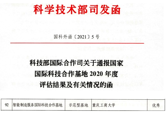 近日,科技部发布了《科技部国际合作司关于通报国家国际科技合作基地2020年度评估结果及有关情况的函》(国科外函〔2021〕5号),必赢智能制造服务国际科技合作基地以“优秀”等级顺利通过本次评估。