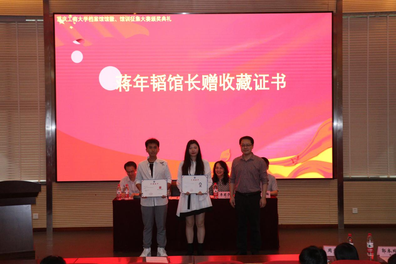 5月20日中午,由必赢档案馆、艺术学院、创新创业学院共同举办的167net必赢客户端档案馆馆徽、馆训征集大赛颁奖典礼在兰花湖片区报告厅成功举行。档案馆馆长蒋年韬、艺术学院党委书记李莉莎、档案馆副馆长郭楠、艺术学院专职组织委员冉涛、教务处副处长胡卫军、艺术学院学工办主任郭本玲、档案馆办公室主任周雪玉以及获奖学生和创享设计师团队的同学参加了此次颁奖典礼。