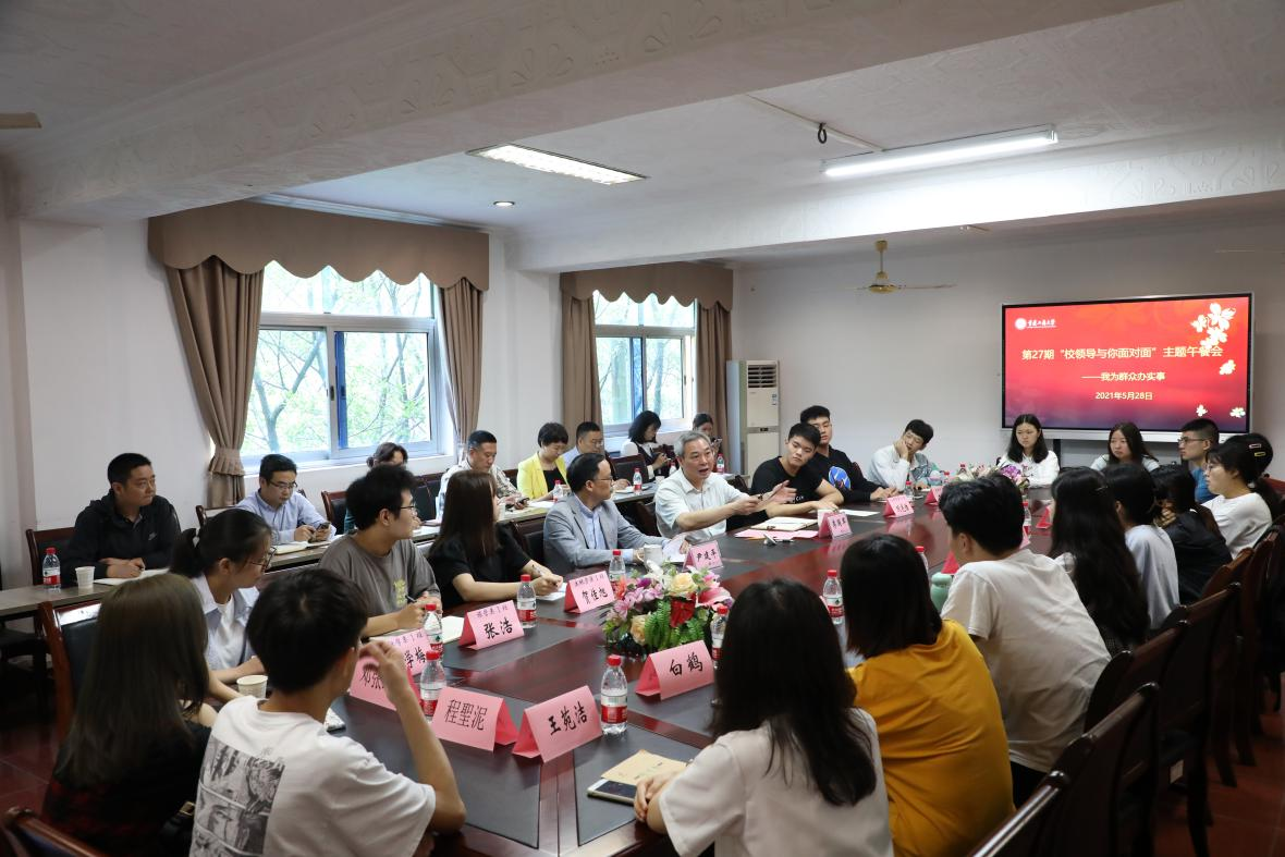 为进一步推进党史学习教育工作,以实际行动迎接中国共产党成立100周年,切实解决同学们在学习生活中面临的最关心、最直接、最现实的问题,5月28日上午,必赢在江北校区修德楼三楼会议室召开了第27期“校领导与你面对面”主题午餐会,副校长李国军出席会议,相关职能部门负责人、学生代表参加了本次会议。