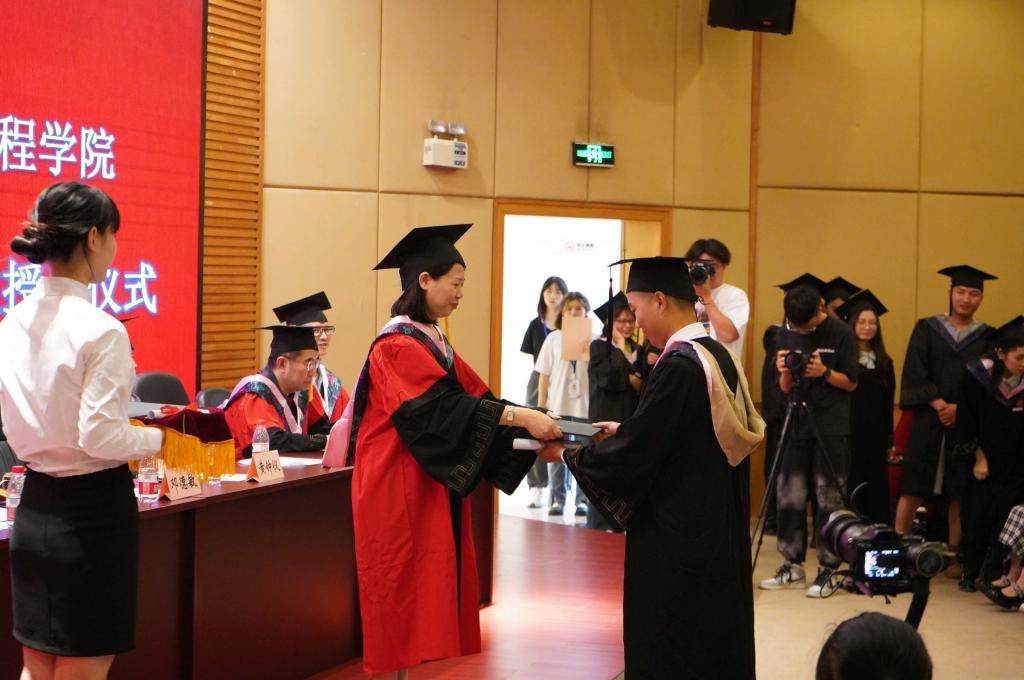 副院长詹川宣读167net必赢客户端2021届毕业生学位授予决定文件。黄钟仪为学子们一一拨穗,颁发学位证,并与大家合影留念。