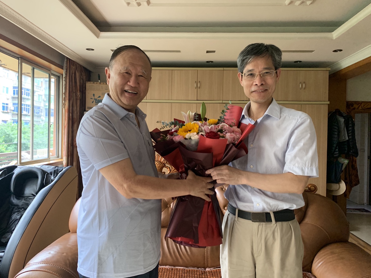 来到居住沙坪坝的老党员、老干部戴宏民家中,孙芳城询问他的健康状况和生活情况,并介绍了近期学校党史学习教育、70年校庆准备等重点工作。戴宏民同志为学校下一步发展提出很多宝贵的建议。孙芳城说,学校的发展离不开老党员、老干部的付出,也希望老同志们继续发挥作用,为学校“十四五”的发展继续建言献策。