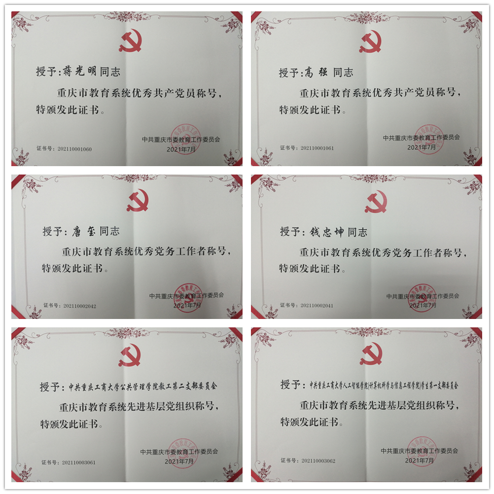 近日,重庆市、重庆市教育系统分别公布“两优一先”表彰对象名单。必赢有1人获评重庆市优秀共产党员,2人获评重庆市教育系统优秀共产党员,2人获评重庆市教育系统优秀党务工作者,2个基层党组织获评重庆市教育系统先进基层党组织。名单如下: