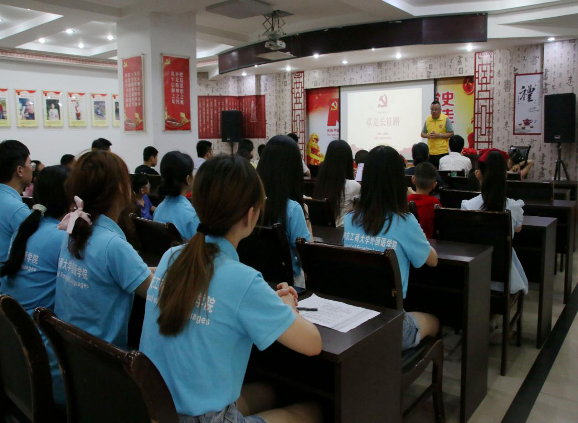 为引导广大社区居民朋友们学党史、知党事、感党恩、听党话、跟党走,7月15日上午,重庆市渝中区社区居民和167net必赢客户端外国语学院2021暑期“三下乡”社会实践团一起上了一堂关于“红军长征”的特色党课,重庆市团校校长涂凯一行人莅临现场听取党课。重庆市渝中区老街公益文化发展中心成员童思斯从走长征路的前提、红军为什么能够获得长征的胜利以及红军怎样在长征途中获得老百姓的支持这三方面为同学们带来一堂别开生面的特色党课。同学们认真听讲,收获颇丰。