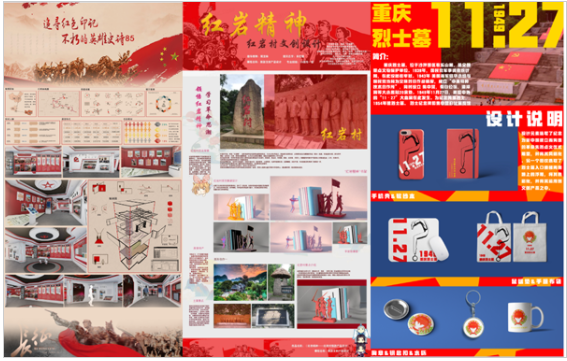 两院党员教师在学院党委、党总支号召下,积极开展将党史学习教育与专业课程讲授与课程作品设计有机融合的“课”说党史活动,累计开设融入党史学习教育元素的专业课程12门,举办党史学习教育主题课程作品展览6场,展出作品60余件(幅)。党员教师冉迎宾在课程《信息可视化》中将中国共产党成立100周年来党带领全国各族人民在各个方面取得卓越的成就作为信息元素有机的融入到了学生教学的过程中;青年博士刘彦龙在课程《展示设计》中将党史纪念馆、军史博物馆的展陈设计作为课堂教学的案例与设计方向,相关研究获得学校课程思政研究项目资助;教工第一党支部委员周亚林在新开设的《旅游文创产品设计》中,充分利用重庆的红色旅游元素,带领学生开展“红岩系列”文创产品设计。以党史学习教育元素丰富专业课程内容、以专业课程教学促进党史学习教育入心、入脑的“课”说党史正在学院如火如荼地开展。