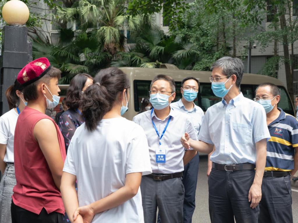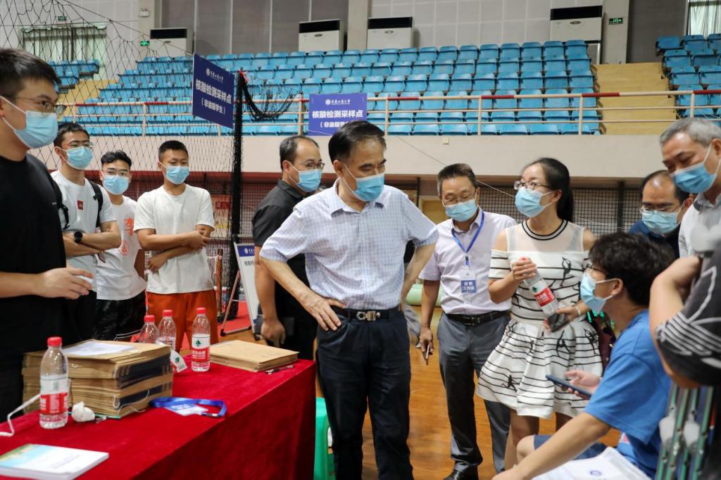 9月7日,李志雄一行先后检查了江北校区、兰花湖片区、南岸校区的迎新点、疫情防控点、核酸检测点和学生食堂。李志雄对参与迎新工作的师生们表示感谢,对各部门、各学院的迎新工作表示肯定。他表示,各单位工作条理清晰,将疫情防控与迎新工作有机结合,让新同学们感受到了学校的热情。他强调,一要做好疫情防控,详细梳理排查疫情防控和安全稳定风险点,确保校园安全稳定;二要为新生提供细致周到的服务,切实做到热情接待、统筹安排、协调有序、细致周到,让每位新生感受到学校大家庭的温暖与关心,让学生安心、家长放心。
