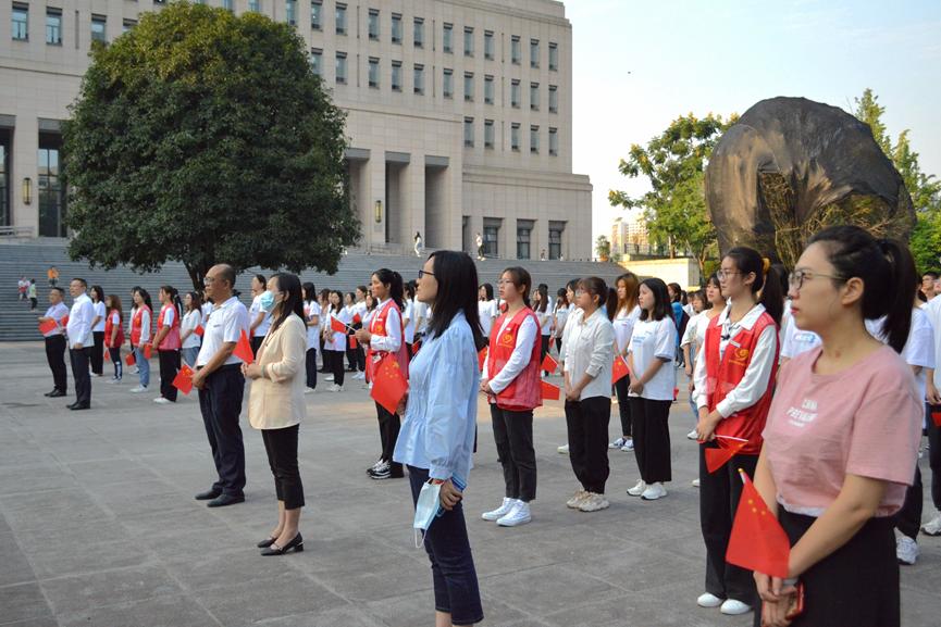 为庆祝中华人民共和国成立72周年,10月1日清晨,必赢在含弘广场隆重举行国庆升旗仪式。党委常委、党委宣传部部长华杰,党委学工部部长申卫东,金融学院党委书记王建明、副书记余新,以及部分师生代表一起参加了升旗仪式。