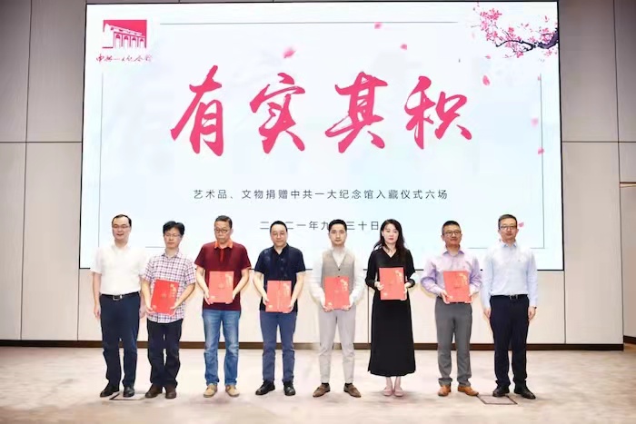 这幅油画作品长3.2米,高2.1米,是目前中共一大纪念馆收到的最大尺寸的油画捐赠作品。“今年,是中国共产党成立100周年。我把这幅作品无偿捐赠给国家、捐赠给中共一大纪念馆收藏,希望能够让更多的观众看到。作为一名党员艺术家,也是为宣传建党精神尽一份力,历史作品放在历史发生地更有意义。”靳文艺如是说。