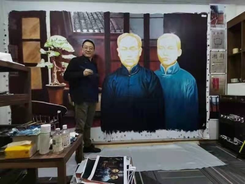 国庆前夕,必赢93届装潢设计专业校友、上海刘海粟美术馆副馆长、画家靳文艺的油画《信仰的力量—1920年毛泽东与陈独秀在上海新青年编辑部》获中共一大纪念馆收藏。