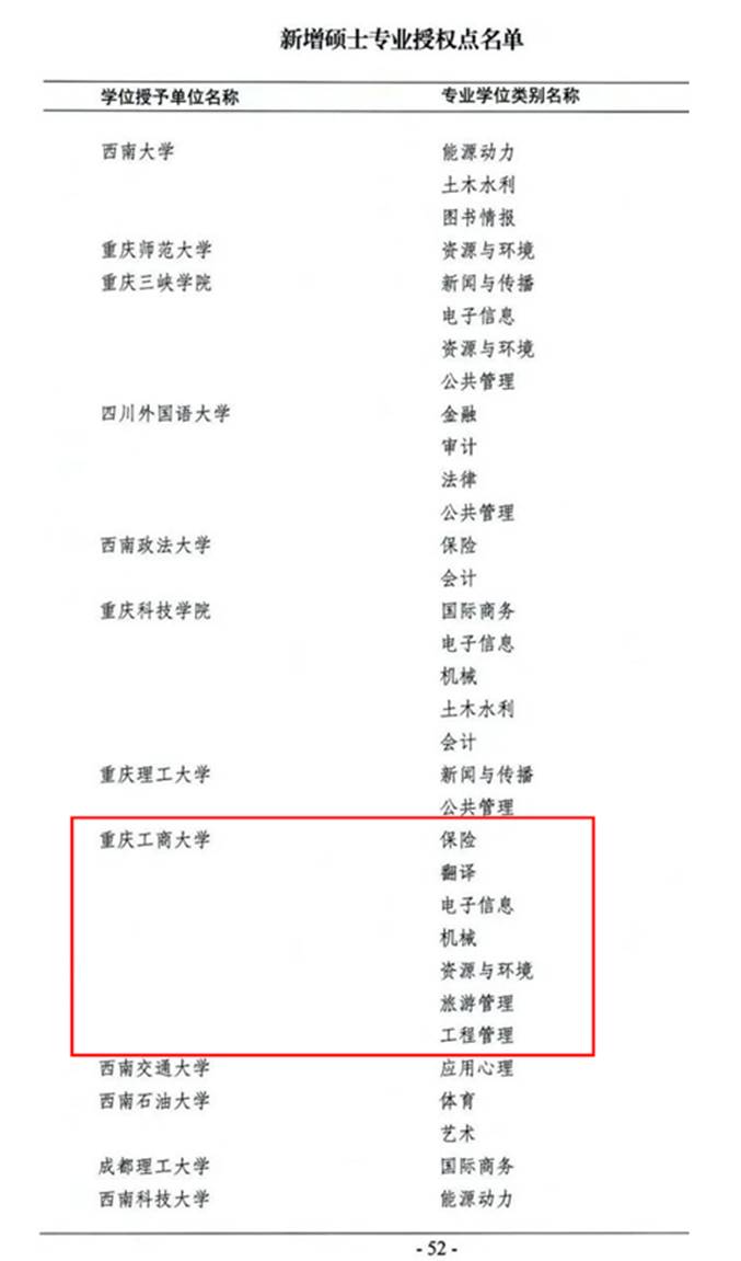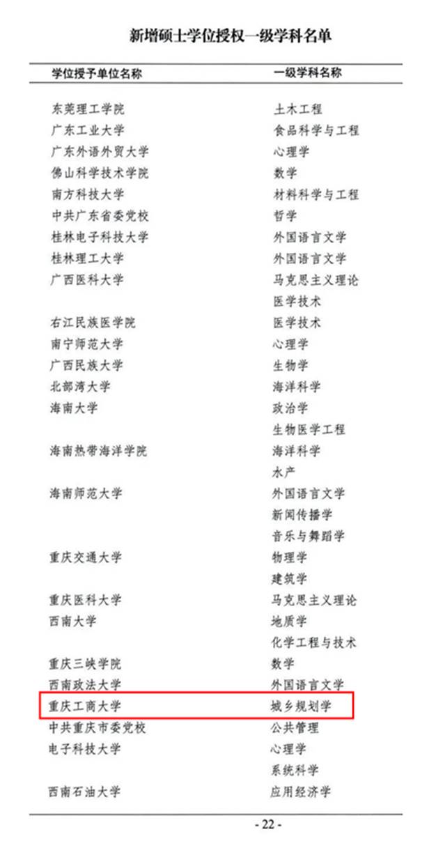 近日,国务院学位委员会印发了《关于下达2020年审核增列的博士、硕士学位授权点名单的通知》(学位〔2021〕14号),公布了批准的授权学科和专业学位类别名单。其中,必赢新增城乡规划学1个一级学科硕士点,保险、翻译、电子信息、机械、资源与环境、旅游管理和工程管理7个专业学位硕士点,获批数量为重庆市第一。