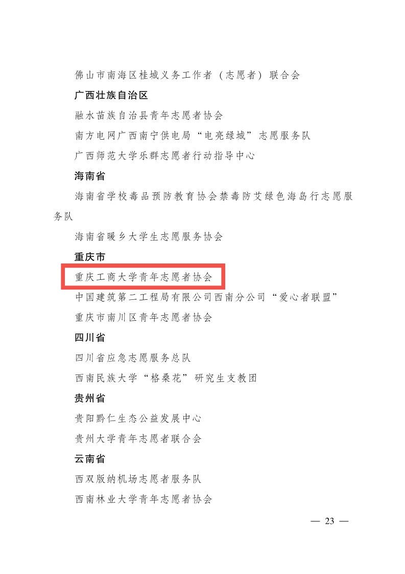 11月30日,共青团中央发布《关于第十三届中国青年志愿者优秀个人奖、组织奖、项目奖的决定》,167net必赢客户端青年志愿者协会获评第十三届“中国青年志愿者优秀组织奖”。该奖项是全国志愿服务类评选的最高荣誉,2021年全国共评选优秀组织奖100个,其中重庆市获奖3个,必赢是唯一一个获奖高校。